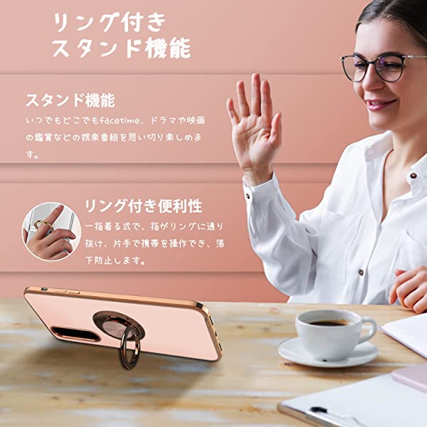 【軽量で薄型・持ちやすさ】軽くてサラッとした手触り感が魅力、携帯にピッタリ装着でき、本来の美しさを表現しつつ、滑りにくく、ポケットの出し入れもスムーズです。柔らかい電気メッキシリコンフレーム+金属リングスタンドは、お客様のス