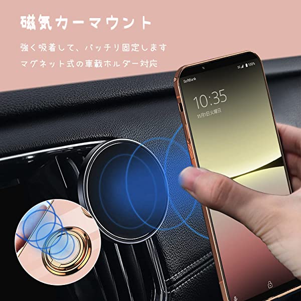 【リング付き&スタンド機能】360度回転スタンド、180角度調節自由自在に使用可能です。マグネット式車載スマホマウントホルダー に対応でき。ケースを横置きにするとスタンド機能になり、片手で携帯を操作でき、滑り止め、強奪、落下などのことを防げます。いつでもどこでもfacetime、ドラマや映画の鑑賞などの娯楽番組を思い切り楽しめます。