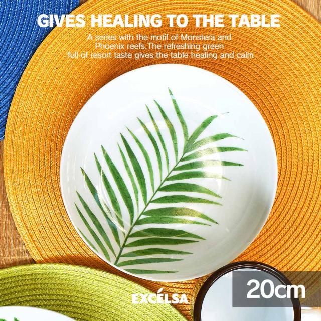 エクスチェルサ EXCELSA 正規輸入販売代理店 食器 スーププレート 20cm 深皿 スープ皿 シチュー皿 葉 グリーン 緑 陶磁器 イタリア ヨーロッパ ブランド おしゃれ 食洗機 食器洗浄機 電子レンジ対応 誕生日 父の日 母の日 プレゼント ギフト お祝い 新生活 新社会人 敬老の日 ハロウィン クリスマス