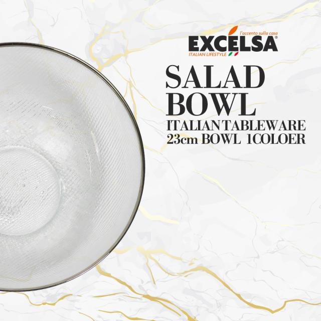 エクスチェルサ(EXCELSA) プラチナム サラダボウル 23cm ガラスボウル 大鉢 ヨーロッパ お皿 おしゃれ ブランド 洋食器 イタリア食器 母の日 新生活 ギフト プレゼント おうち時間 おうちごはん 敬老の日 ハロウィン クリスマス