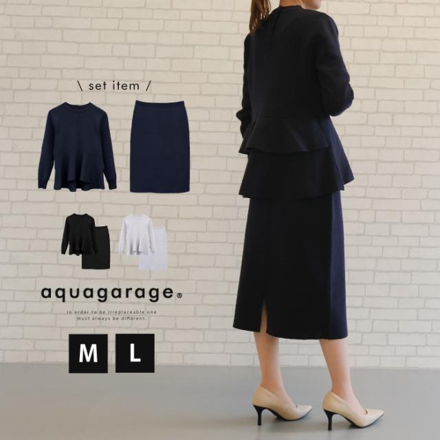 送料無料 ペプラムニットセットアップ レディース 春 秋 長袖 M L | アクアガレージ aquagarage