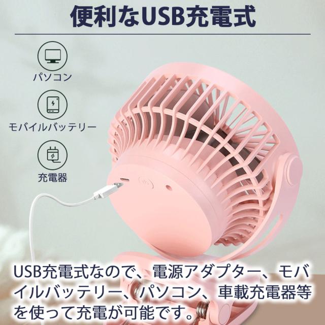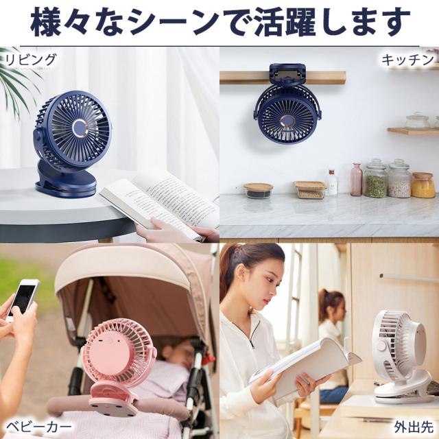 扇風機 サーキュレーター クリップ 卓上 ベビーカー USB 静音 小型 おしゃれ コードレス USB オフィス クリップ式 デスク 扇風機 卓上扇風機 充電式 リビング クリップファン パワフル 壁掛け 吊り下げ DCモーター 4段階風量 24H使用長時間 子供 熱中症 日本語説明書