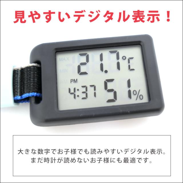 つき時計 温度 湿度 湿温 日時 時間 表示 カレンダー機能 取り付け ストラップ時計 マジックテープ ボタン操作 文字盤 大きい リビング 大画面 コンパクト 風邪 カビ 肌ケア 測定器 ナース プレゼント ギフト