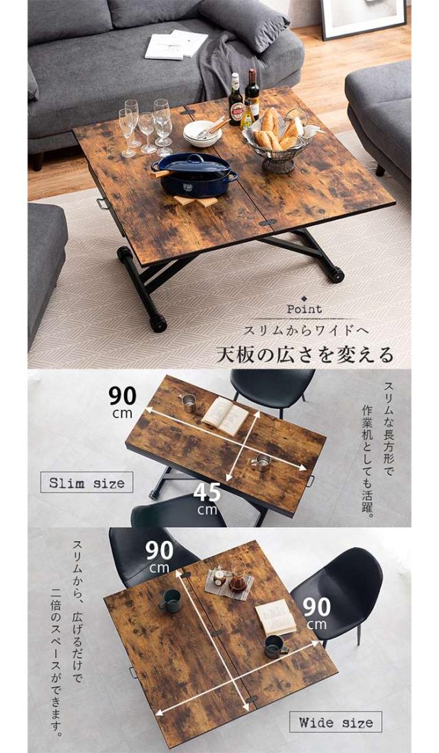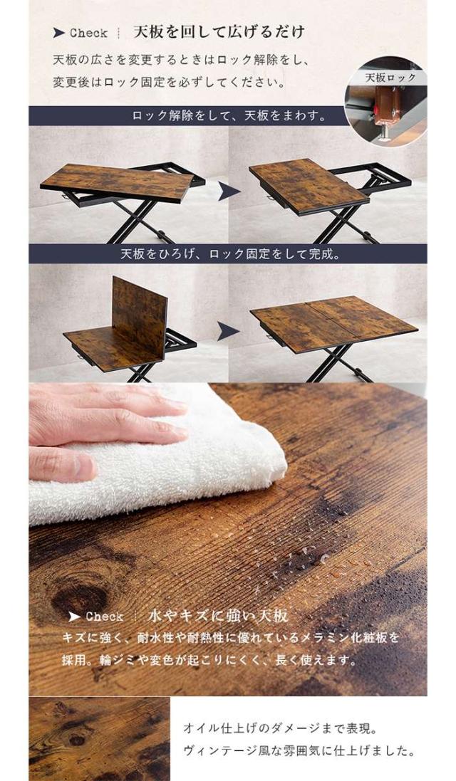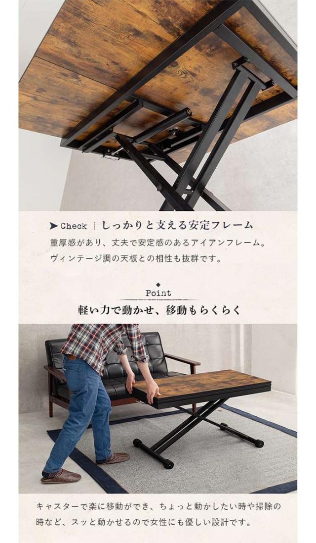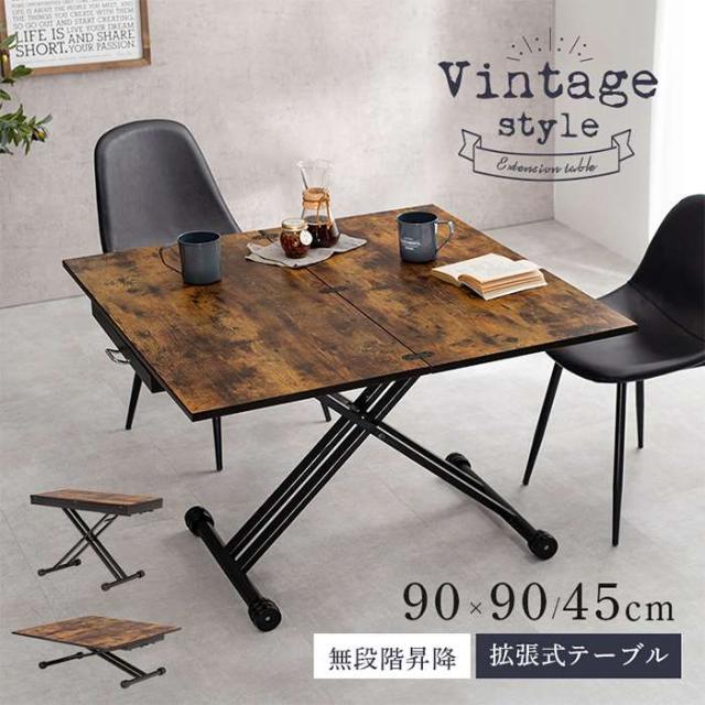 ■商品名:エクステンション昇降テーブル 拡張式テーブル 昇降テーブル ヴィンテージスタイル