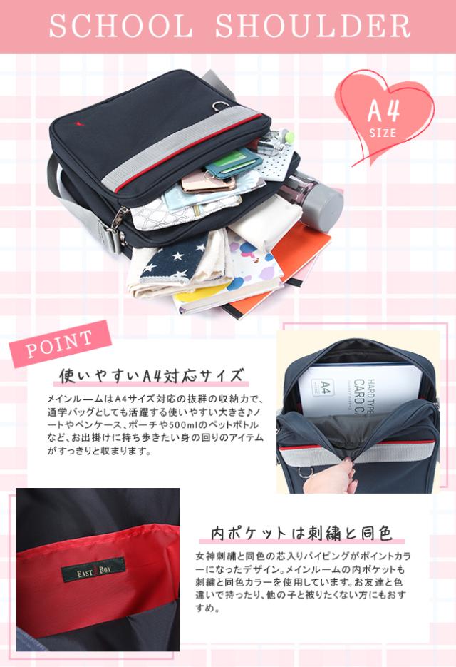商品レビューで+5%|イーストボーイ スクールバッグ ショルダー サブバッグ 女子 中学生 高校生 女子高生 通学 縦型 横浜型 横浜バッグ EAST BOY 3209079