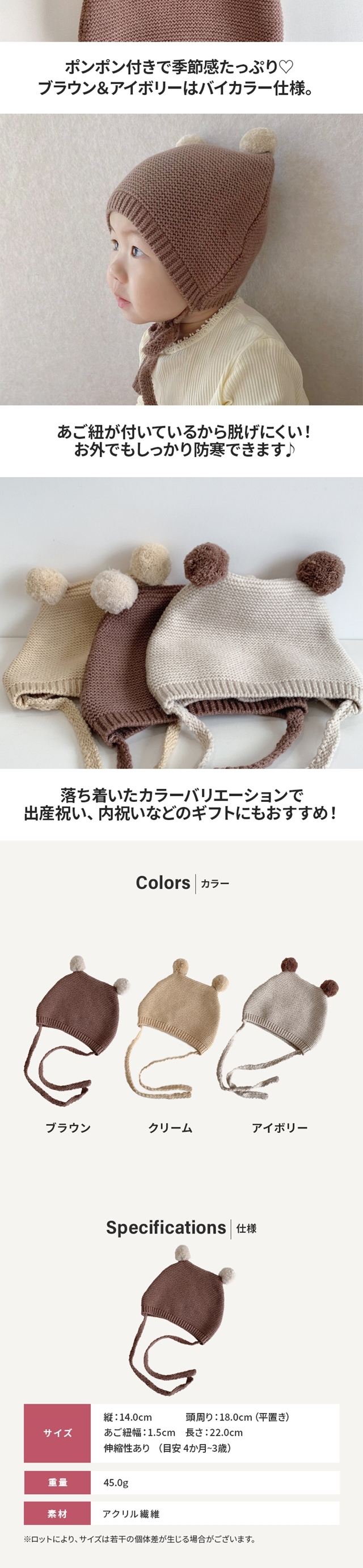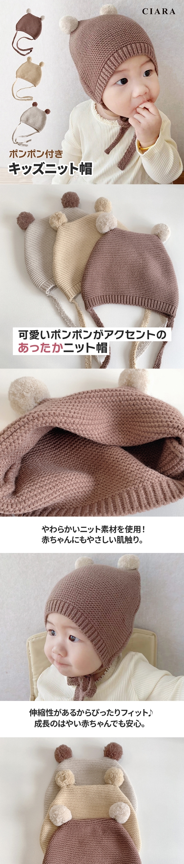 帽子 ダンス ポンポン あご紐 紐付き ひも付き ボンネット ベビー 赤ちゃん 新生児 防寒 未使用 撮影 年賀状 子供 キッズ こども 男の子 女の子 男女兼用 姉妹 兄弟 お揃い お宮参り 百日祝い 100日祝い 保育園 幼稚園 お出かけ 普段使い ポイント消化 プレゼント ギフト プレゼント交換 プチプラ プチギフト 内祝い かわいい おしゃれ 冬 寒波 秋 お散歩 誕生日 こどもの日 出産祝い CIARAポーチ雑貨屋 シアラ OEM 大量注文 ネスリーフ 福袋 ホワイトデー お返し 新生活 セール 2025