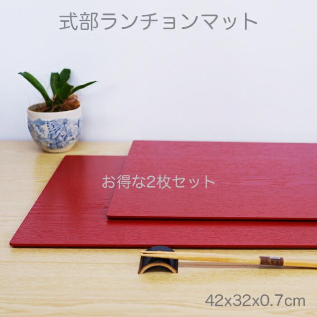 【SALE楽々バザール】■ 14.0長ランチョン式部 赤 2枚set 木製 ランチョン 板膳 木製トレイ 折敷 木製マット 一人膳 ♪お得な2枚セット サイズ 42x32x0.7cmx2
