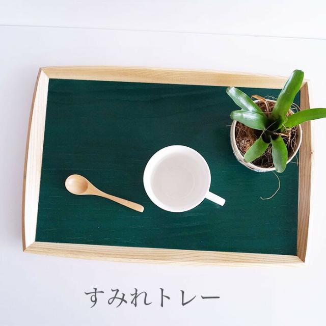 【SALE楽々バザール】♪すみれトレー(大)緑 /木製 お盆・カフェトレー・おもてなし.使いやすい