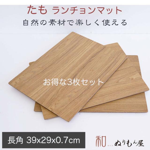 ■13.0ランチョンタモ お得な3枚セット 木製 ランチョンマット 板膳 両面膳 木製トレイ 折敷 木製マット 一人膳 サイズ 39x29x0.7cm (たも)