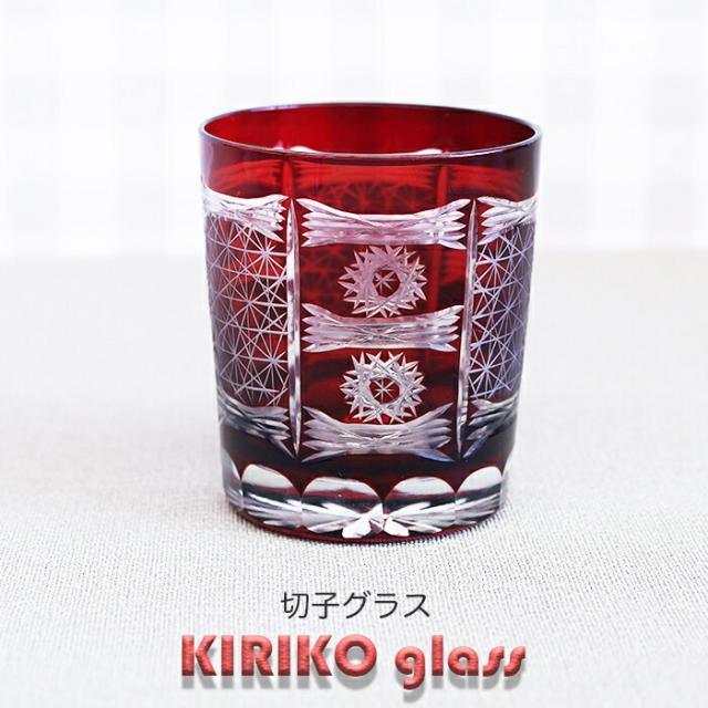 【SALE楽々バザール】 ♪切子グラス 赤 きらめき : タンブラー ロックグラス 水割りグラス 8x8x9cm おしゃれな 切子 ガラス コップ 焼酎