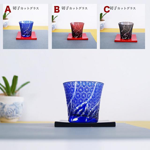 ♪切子グラスと利休 銘々皿 セット 【切子の色をお選びください】