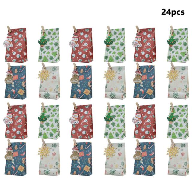 24 個の紙クリスマスギフトバッグ食品バッグタグぶら下げ付きクリスマスパーティー用品ギフト包装