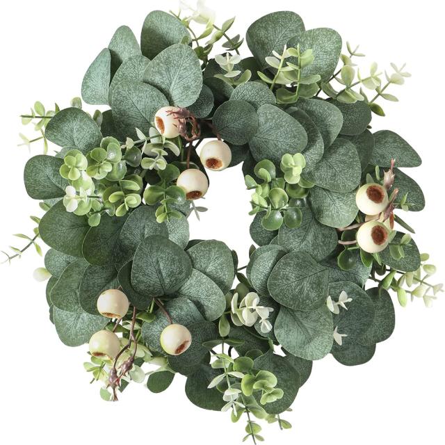 人工ユーカリの葉花輪シミュレーション花輪と果実結婚式のパーティーフロントドア壁窓の装飾