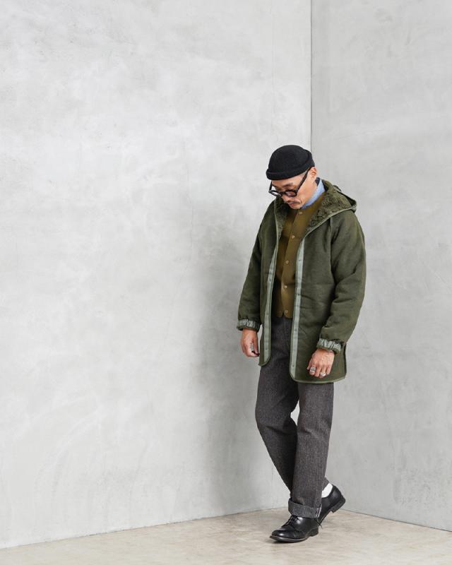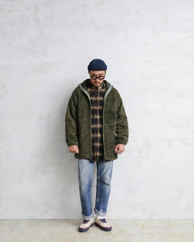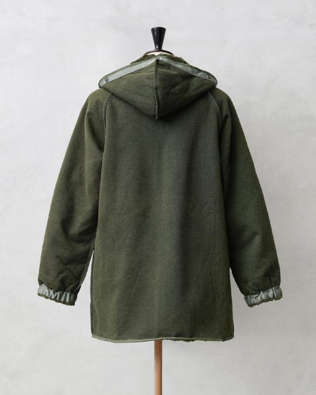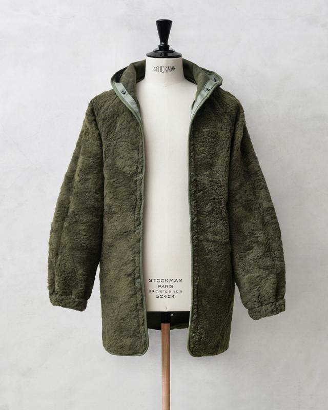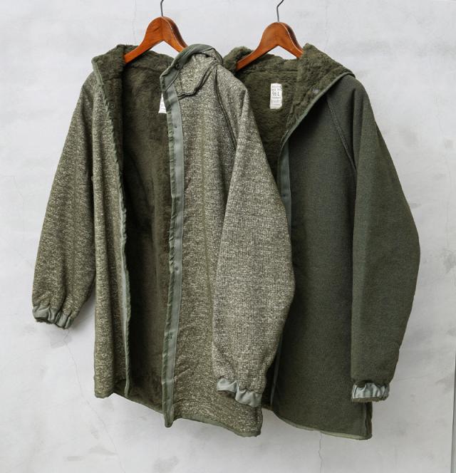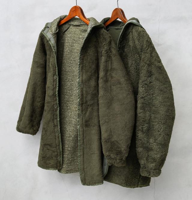 希少価値の高いフランス軍放出の「F-2パーカー」用の防寒ボアライナーが入荷しました!主に1990年代に製造されたアイテムが中心の入荷になっており、F-2パーカーに取り付けた際には内側になるアクリルボアが非常に暖かく、ボアライナーをアウターとして使用する際には裏返してアクリルボアを表にして着用しても見た目の雰囲気が良く、羽織としてコーディネートしていただけば着こなしの幅も広がります。シンプルなデザインですが、フード付きですので抜群の防寒性で、単体で着る際にもデザイン性が高いことからアウターとしての着用はもちろん、コートなどのライナーとしても便利なアイテムです。
