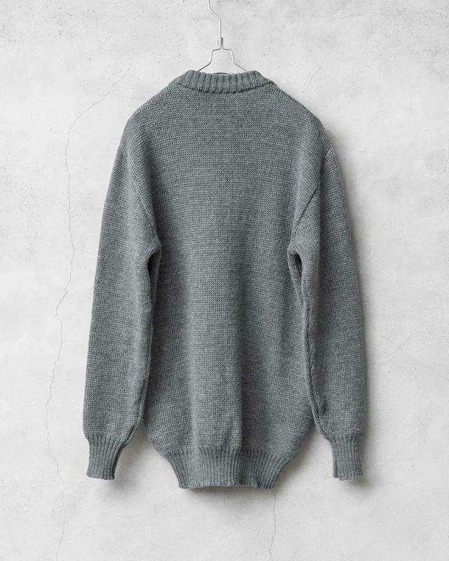 スイス軍よりハーフジップのプルオーバータイプのセーターが入荷しました。肉厚に編まれたリブ編みのニットはウールを70%使用していますの保温性に優れており、ナイロンの名称で知られているポリアミドを30%混紡することでウール100%よりもチクチク感も少なくご使用いただけます。約30cmのフロントジップが使用されていますので着脱が容易に行えて快適にご使用いただけます。山岳部隊が使用していたということもあり、山岳地帯の厳しい環境でも耐えうる高品質なデザインになっています。非常に保温性が高く雰囲気のある1枚で、入手困難で希少なハーフジップセーターです。