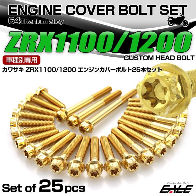 ZRX1100 1200 チタン エンジンカバーボルト 25本セット カワサキ車用 カスタムヘッド ゴールド JA8108