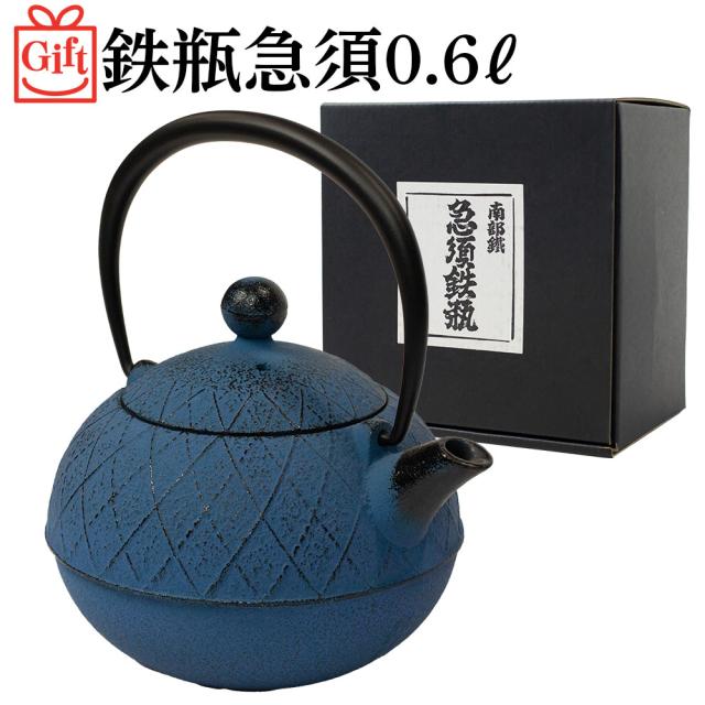 鉄瓶急須 アーガイルブルー0.6リットル(茶こし付)