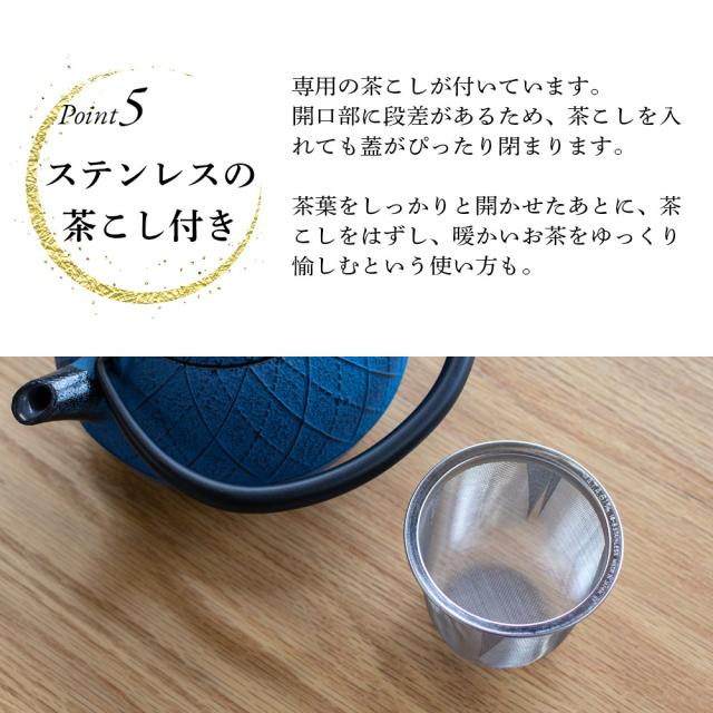 Point5.ステンレスの茶こし付き
