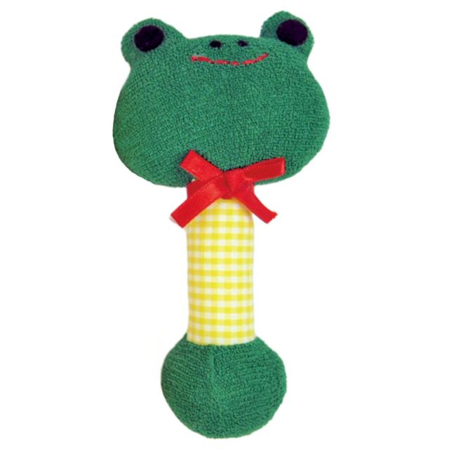 ママの肌の感触に似た柔らかくて、やさしい手触りのガラガラです。安心の日本製で、何十年も知育玩具を作り続けている職人さんが、ひとつひとつ丁寧に仕上げています。赤ちゃんが握りやすいスティックタイプでやさしい音色の鈴が入っています。出産祝いやプレゼントにもおすすめです。