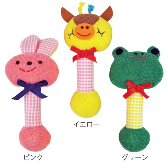 ガラガラ スティック おもちゃ 赤ちゃん 日本製 ( 綿100% 知育玩具 玩具 がらがら にぎにぎ 子供 ベビートイ ベビー カラフル 音が鳴る どうぶつ アニマル ハンドメイド かわいい 出産祝い 女の子 男の子 雑貨 インテリア )