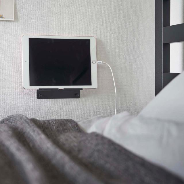 就寝前の動画の視聴やスマホの充電スペースにもおすすめです。ナイトテーブルなどの家具を置く場所がなくても、壁に省スペースに取り付けできます。