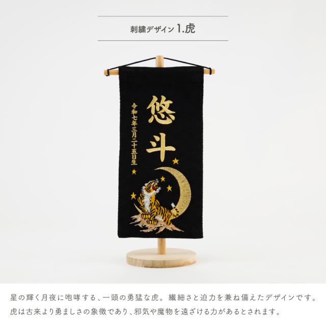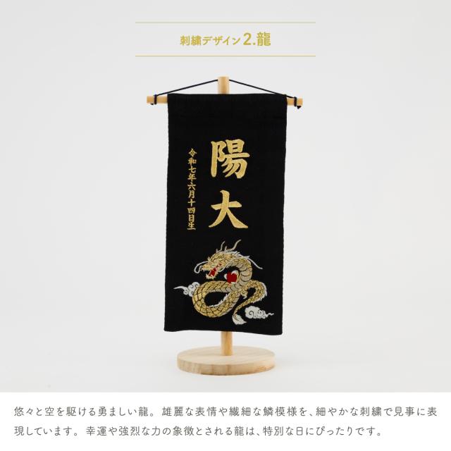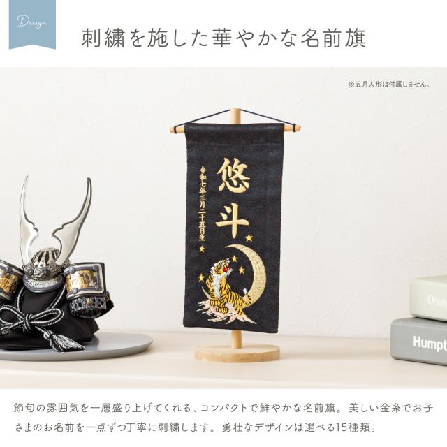 名前旗 男の子 刺繍 五月人形 初節句 コンパクト 刺繍名前旗 -祥慶 shoukei- 小(20) 選べる15種類 節句 命名 5月人形 端午の節句 名入れ 龍 鷹 虎 大きい かっこいい こどもの日 黒 白