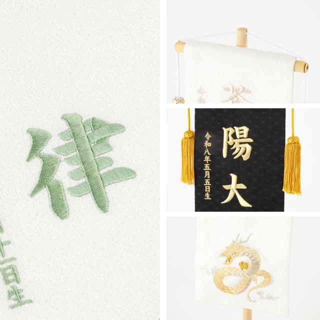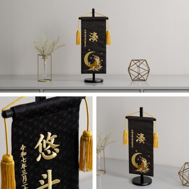 名前旗 男の子 刺繍 五月人形 初節句 コンパクト 刺繍名前旗 -祥慶 shoukei- 中(30) 選べる15種類 節句 命名 5月人形 端午の節句 名入れ 龍 鷹 虎 黒 白 大きい かっこいい こどもの日