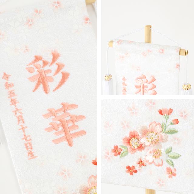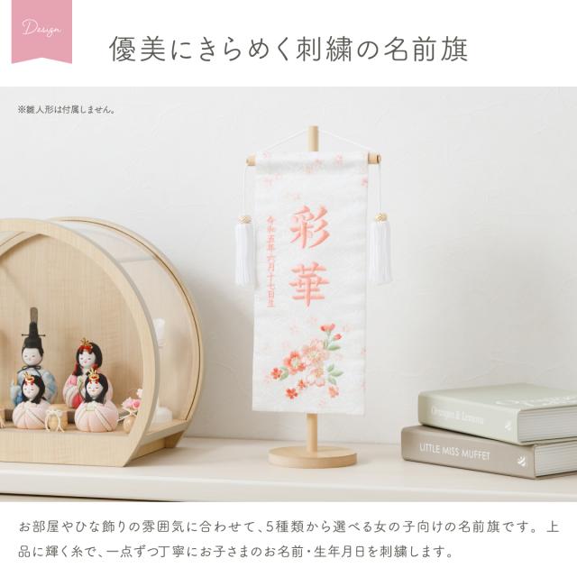 雛人形 名前旗 女の子 刺繍 雛祭り 節句 コンパクト 刺繍名前旗 中(30) -桜咲 ousaki- 選べる5種類 初節句 旗 おひなさま ひな人形 ひな祭り かわいい 白 ピンク ベージュ 桜 高級