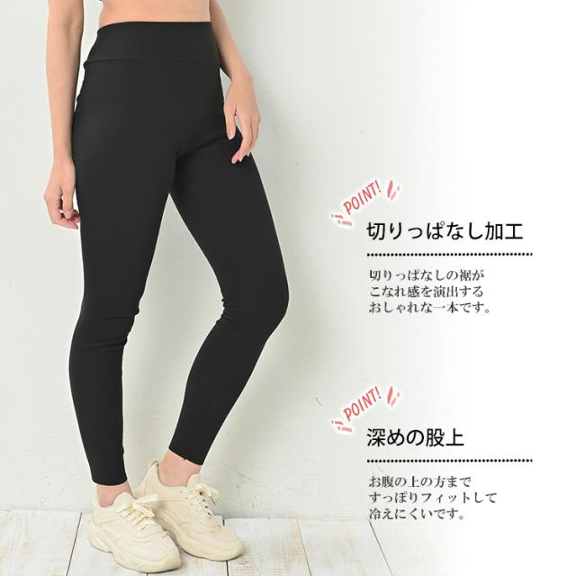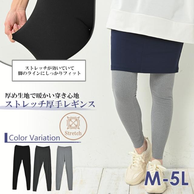 大きいサイズ レディース 厚手レギンス 9分丈 メール便送料無料 切りっぱなし裾 ストレッチ素材 レッグウェア インナー M-L/LL-3L/4L-5L ゆったりサイズ ぽっちゃり女子 プラスサイズ