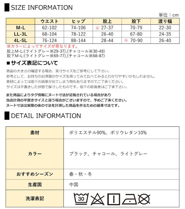 LL-3L:ウエスト68-104 ヒップ78-122 股上26-40 股下67-80 渡り24-35