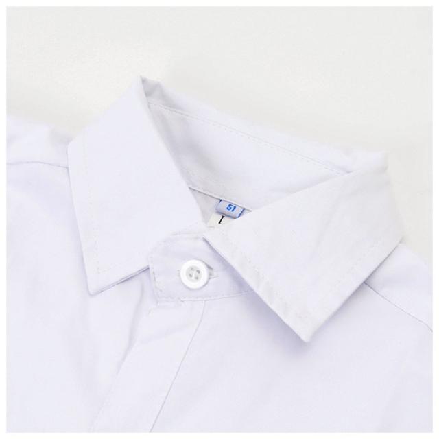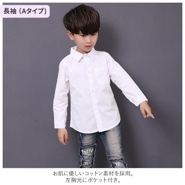 | 商品説明 | ・シンプルなホワイトカラーのキッズ用シャツ。 ・お肌に優しいコットン素材を採用。 ・左胸元にポケット付き。 6サイズ展開&ユニセックス仕様。 ・長袖(Aタイプ)と半袖(Bタイプ)の2種類をご用意。2種類揃えれば、季節によって使い分けもOK。 ・フォーマルシャツとして大活躍。 |