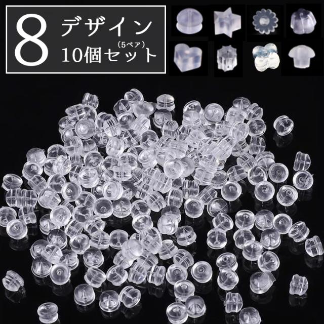 ピアス キャッチ 金属アレルギー対応 サージカルシリコン製 10個 5ペア セット 透明 クリア フラワー クローバー ハンバーガー ハート 星