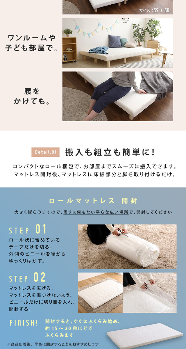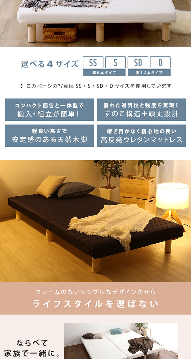 頑丈すのこ構造 高反発 マットレス付きベッド シングル / 脚付きマットレス 安い すのこベッド ウレタン 圧縮梱包 高反発マットレス シンプル 一人暮らし 一体型