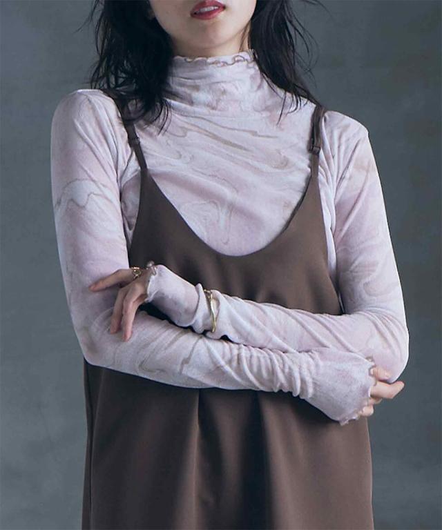 今年顔のシアートップスでシンプルコーデをフレッシュに刷新 ほんのりとした透け感とマーブル柄が今年らしいカットソープルオーバー。インナーを着ればトップスとして、ニットやスウェットをレイヤードしてマーブル柄をチラ見せすれば、コーディネートの効かせ役にもなり、着回し度大。 ポリエステル100%