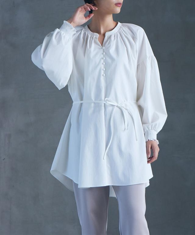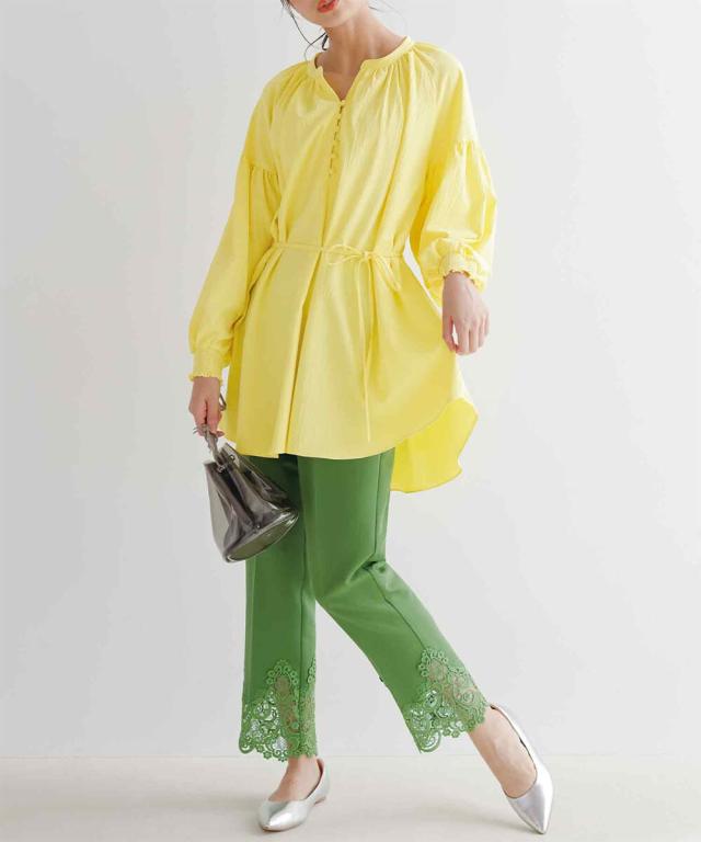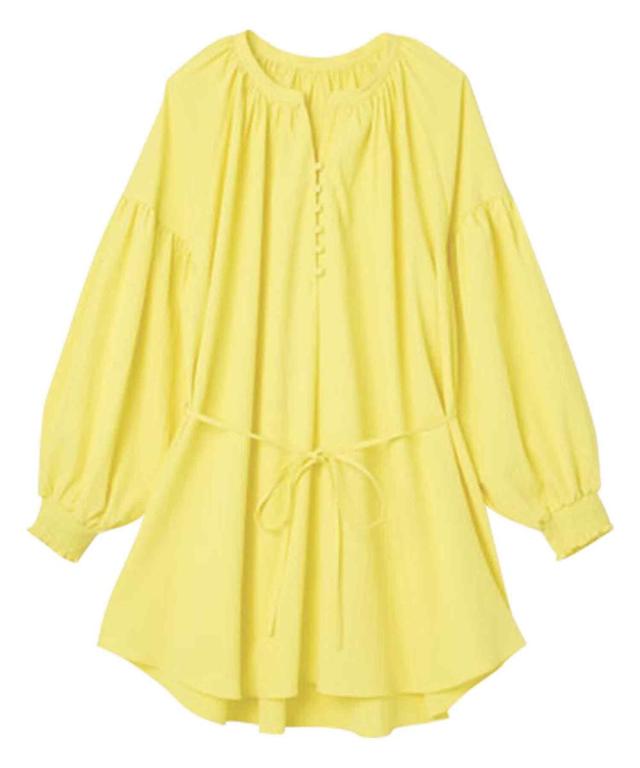 春スタイルに欠かせないチュニックを鮮やかイエローとピュアなホワイトで展開。 ゴムシャーリングの袖口やボリューム袖、前立てのクルミボタン使いで旬のエッセンスもIN。共布の細ベルトはメリハリアップに一役。 ポリエステル97% ポリウレタン3% 袖口ゴム入り 細リボンベルト付(共布)取り外し可