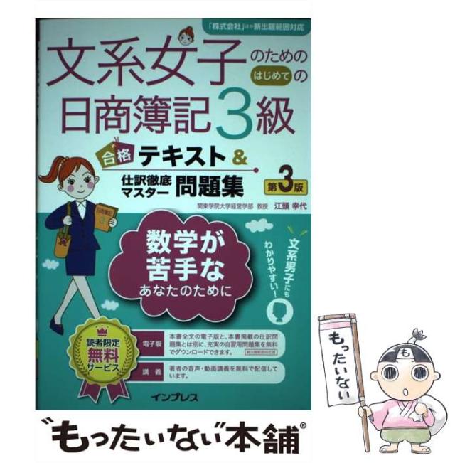 商品名:【中古】 文系女子のためのはじめての日商簿記3級合格テキスト&仕訳徹底マスター問題集 第3版 / 江頭幸代 / インプレス [単行本(ソフトカバー)]【メール便送料無料】