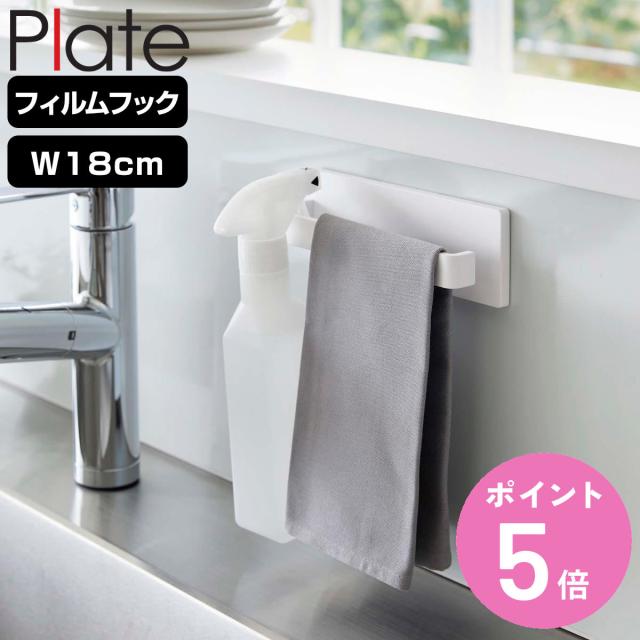 Plate フィルムフック タオルハンガー プレート W18 ( 山崎実業 プレートシリーズ タオルバー タオル掛け 吸着 貼ってはがせる 18cm 壁面収納 壁掛け ふきん掛け キッチン 洗面所 貼り付け ホワイト )