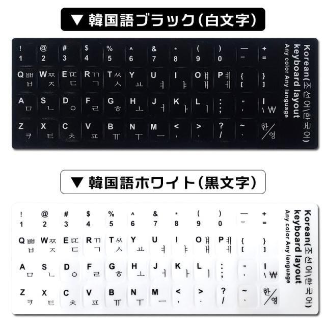 キーボードシール 日本語 韓国語 ハングル語 白文字 ホワイト 黒文字 ブラック 日本語配列 キーボード シール 記号 数字 JIS 黒地 黒背景 白地 白背景 アルファベット 数字 パソコン PCデスクトップ 文字消え 消えた文字 補修シール 修復 修理 交換 ラベルシール ステッカー
