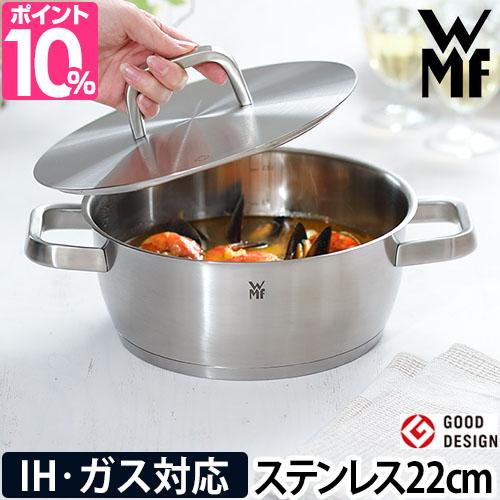 両手鍋 ステンレス鍋 キャセロール 22cm おしゃれ 浅型 ステンレス 多層鍋 蓋付き ih対応 ガス対応 煮物 炊飯 オーブン 揚げ物 食洗機対応 取っ手 熱くならない グッドデザイン賞 スタイリッシュ ギフト プレゼント 母の日 父の日 クリスマス クリスマスプレゼント お返し ヴェーエムエフ アイコニック ローキャセロール 22cm WMF