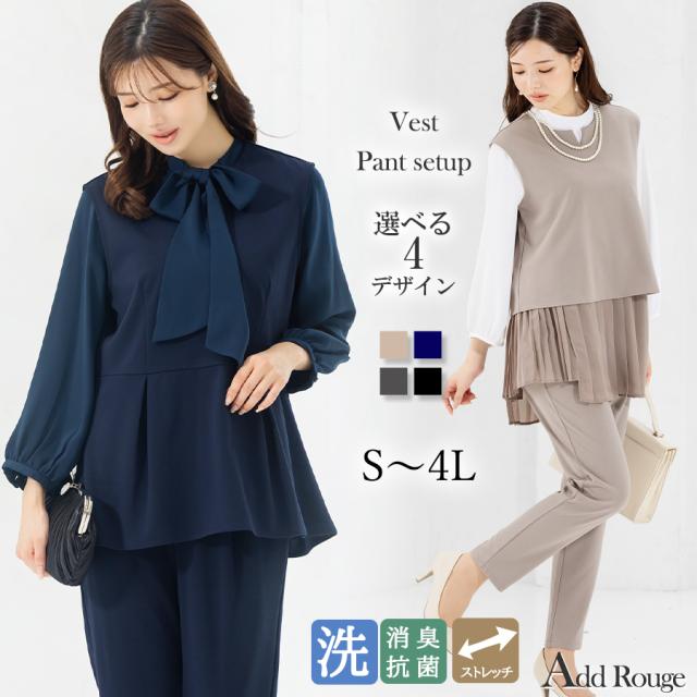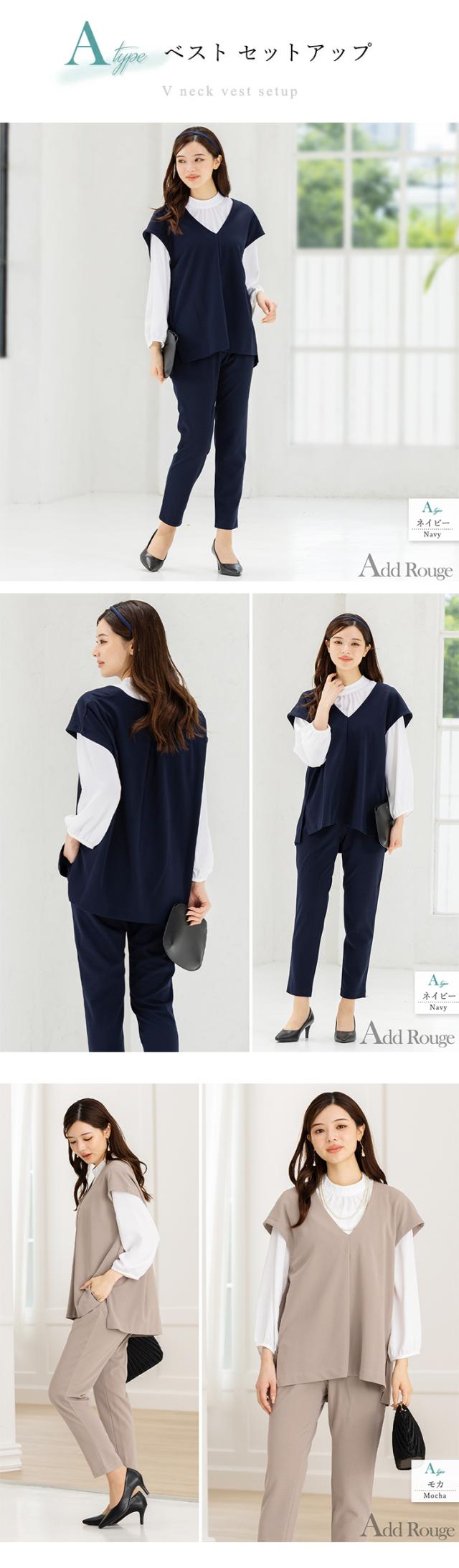 スーツ レディース セットアップ 洗える パンツスーツ ベストスーツ オフィスカジュアル 上下セット ノースリーブ ドルマン レディーススーツ ストレッチ 大きいサイズ フォーマル 通勤 女性 ネイビー30代 40代 50代 t7087