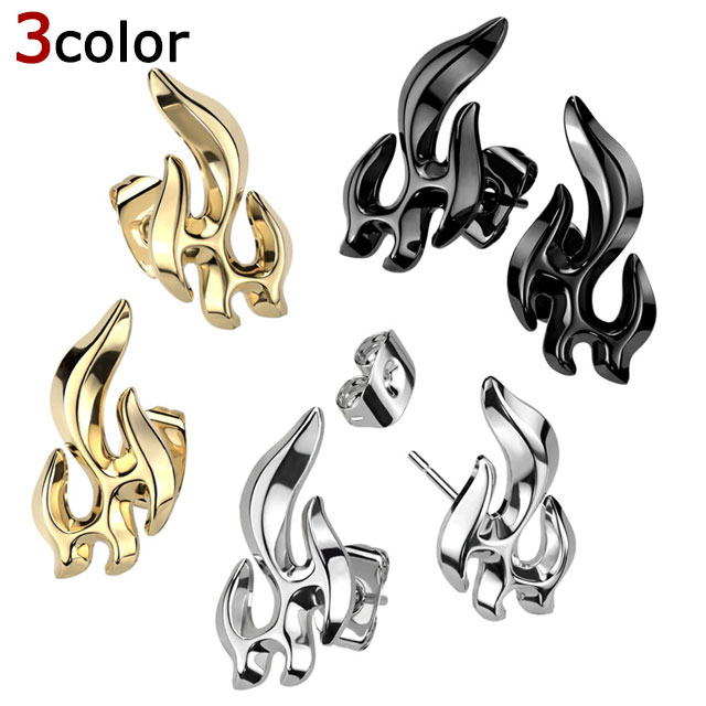 炎をモチーフにしたおしゃれなステンレス製スタッドピアス。