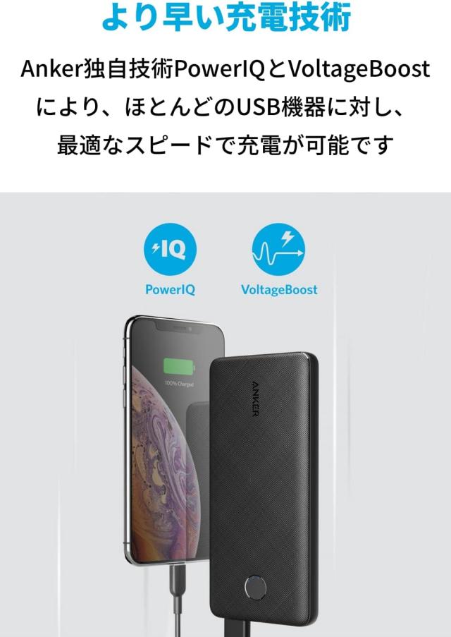 Anker PowerCore Slim 10000(モバイルバッテリー 大容量 薄型 10000mAh)【USB-C入力ポート/PSE技術基準適合/PowerIQ & VoltageBoost/低電流モード搭載】iPhone & Android 各種対応