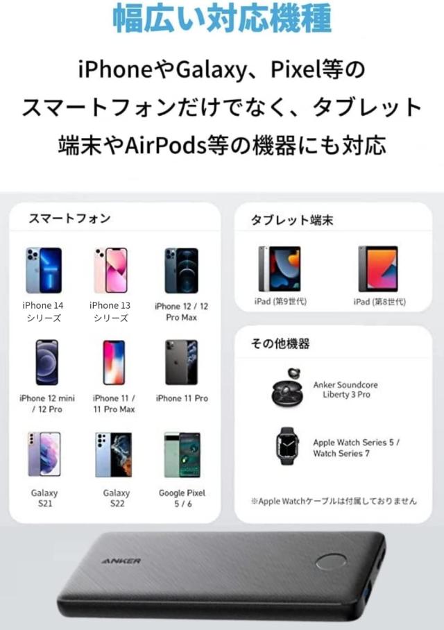 | ブラック:パッケージ内容 | Anker PowerCore Slim 10000、USB-C & USB-Cケーブル(※ライトニングUSBケーブルは別売り)、取扱説明書、最大24ヶ月保証 (※正規販売店からの注文に限り18ヶ月保証の対象となり、Anker会員には+6ヶ月の延長保証が付きます。注文番号が保証書の代わりとなります。)、カスタマーサポート |