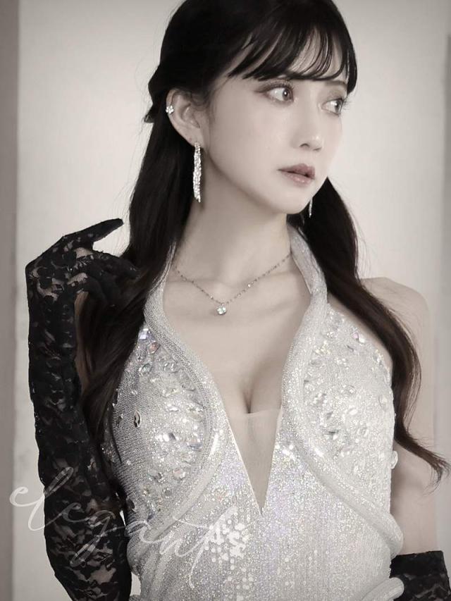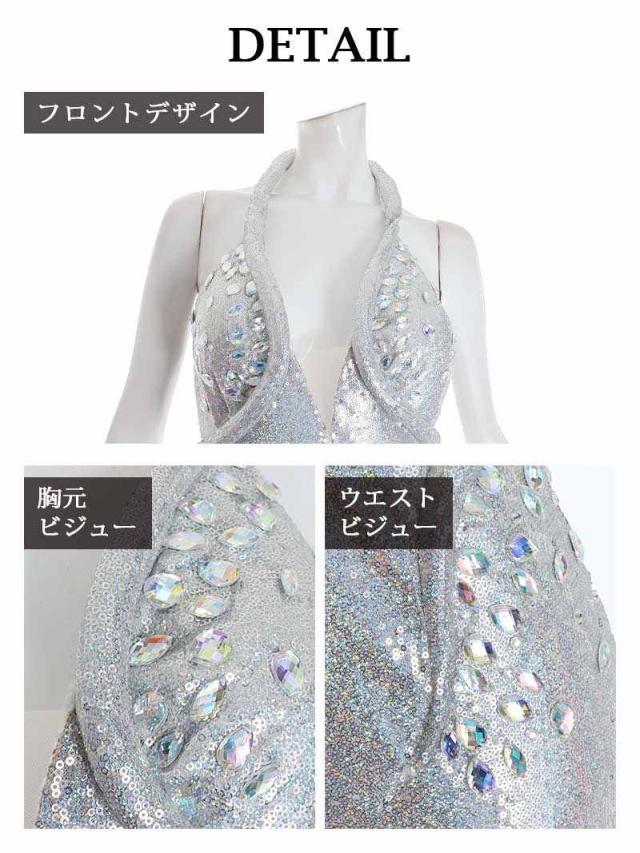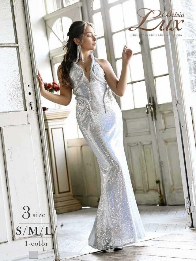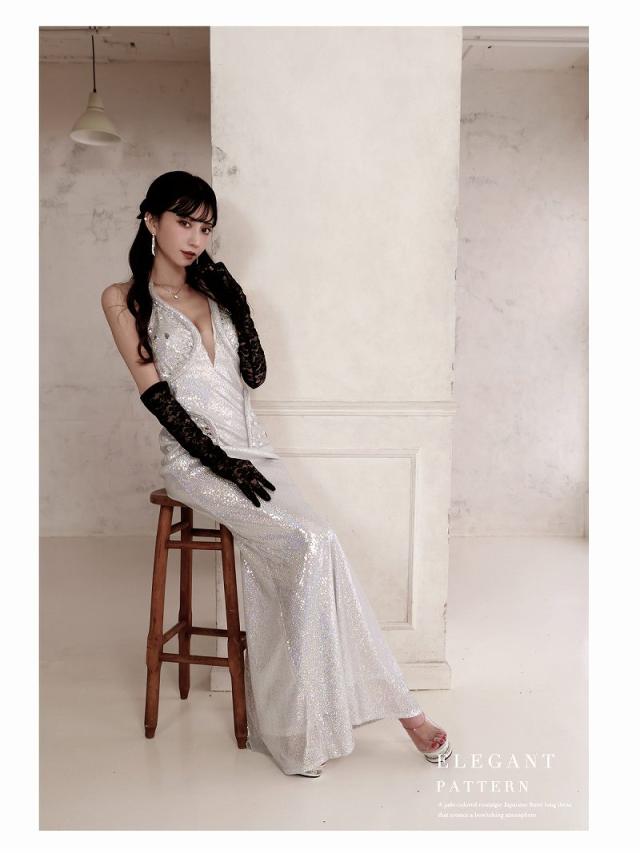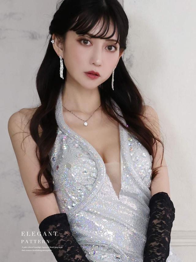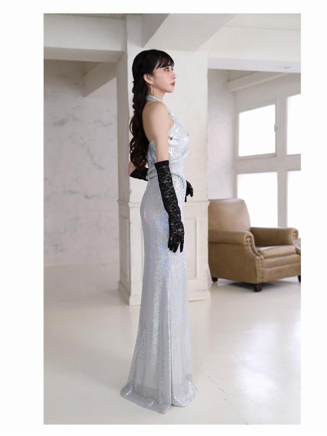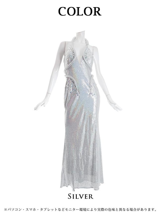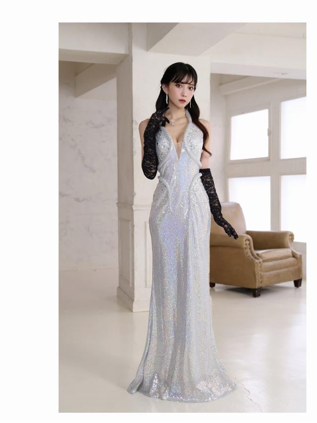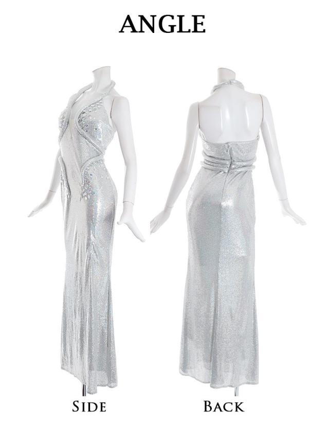 ☆光沢感あるシルバーがゴージャスな華やかを放つロングキャバドレスです。