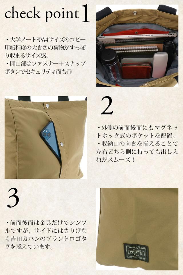 ポーター PORTER メンズ レディース トートバッグ タウンユース デイリーユース 通勤 スマホ おしゃれ シンプル コットン 軽い 旅行 綺麗め 上品 カジュアル