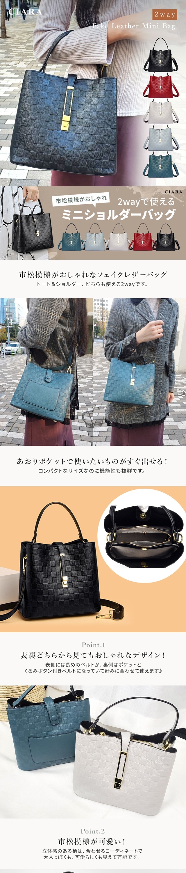バッグ レディース ショルダーバッグ クロスボディバッグ トートバッグ 合皮 フェイクレザー レザー調 エコレザー ミニショルダー ミニトート ショルダー ミニバッグ ハンドバッグ サブバッグ 肩掛け 斜めがけ 上品 高見え 2way 2ウェイ ポケット アレンジ かばん カバン 鞄 シンプル 市松模様 柄 ファスナー付き チャック付き ファスナー 収納 実用性 小さい 小さめ 大人 女性 使いやすい デイリー お呼ばれ ママ ママバッグ マザーズバッグ 仕事 オフィス 通勤 通学 自転車通勤 旅行 旅行用 トラベル 春 夏 秋 冬 出張 女子 大学生 高校生 OL 会社員 20代 30代 40代 50代 60代 70代 80代 かわいい 可愛い おしゃれ きれいめ カジュアル バレンタインデー バレンタイン ホワイトデー お返し 母の日 敬老の日 クリスマス デート パーティー 彼女 誕生日 新生活 贈り物 福袋 プレゼント プチギフト ギフト セール お得 ポイント消化 送料無料 CIARAポーチ雑貨屋 シアラ OEM 大量注文 ネスリーフ 2025 遅れてごめんね