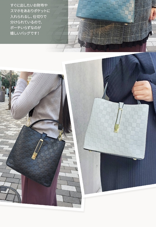 送料無料 市松の型押しがオシャレな高見え2wayバッグ