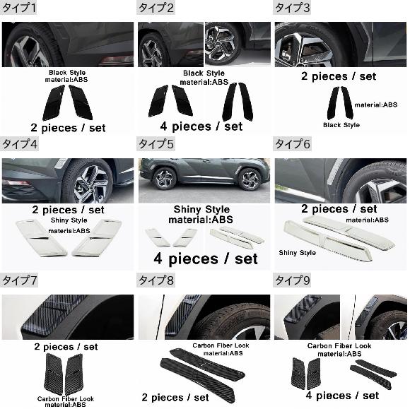 自動車 スタイリング ホイール アイブロー フェンダー 通気口 吹き出し口 インテリア カバー トリム ブラック/シルバー 適用: ヒュンダイ/現代/HYUNDAI ツーソン NX4 2021 2022 アクセサリー タイプ5 AL-PP-3936 AL