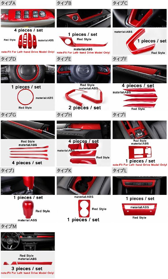 カップホルダー/ナビゲーション スクリーン/セントラル コントロール インストルメント パネル インテリア カバー トリム 適用: MAZDA6 2019-2021 レッド インテリア タイプA・タイプM AL-PP-4474 AL
