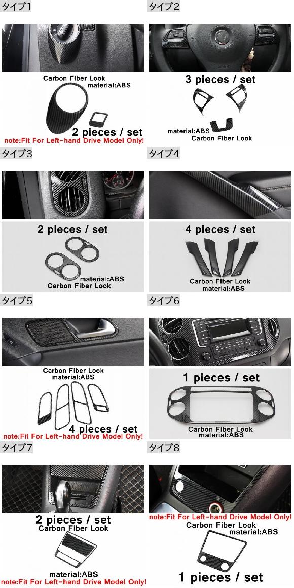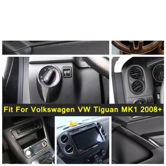 カーボンファイバー インテリア キット 適用: フォルクスワーゲン/VOLKSWAGEN VW ティグアン MK1 2008-2015 ヘッド ライト ランプ スイッチ ボタン/AC 吹き出し口 カバー トリム ABS タイプ2 AL-PP-4154 AL